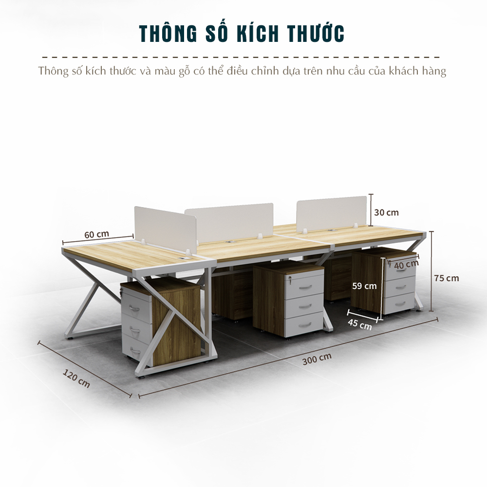 Màu sắc: Kết hợp giữa tông gỗ sáng và trắng, dễ phối hợp với nhiều phong cách nội thất văn phòng.