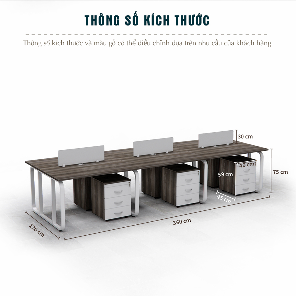 | Vách ngăn | Cao 30 cm – chất liệu gỗ MDF phủ Melamin cùng tông trắng xám |