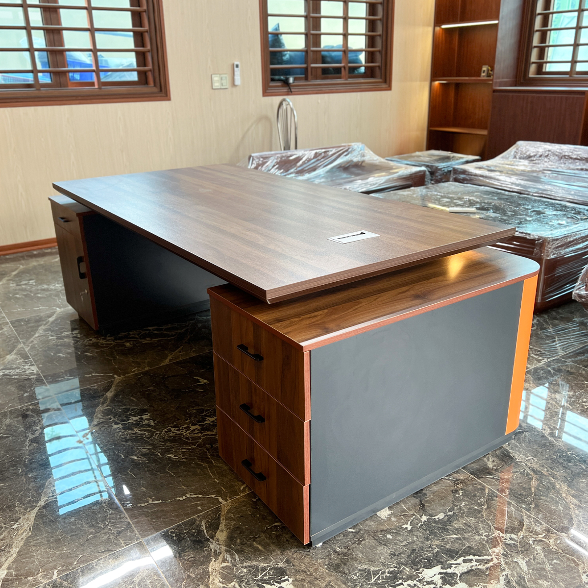 Bàn không chỉ đáp ứng yêu cầu về công năng sử dụng mà còn thể hiện được vị thế và phong cách chuyên nghiệp của người lãnh đạo. Cấu trúc chắc chắn, vật liệu bền và hình khối mạnh mẽ tạo nên cảm giác ổn định, thoải mái khi làm việc.