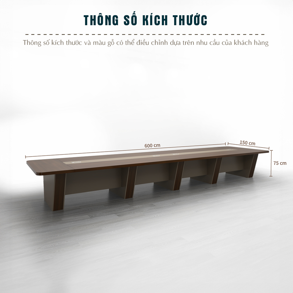 Thiết kế tối ưu cho phòng họp đông người: Với chiều dài lên đến 6 mét, bàn có thể đáp ứng nhu cầu họp của 20–24 người cùng lúc.