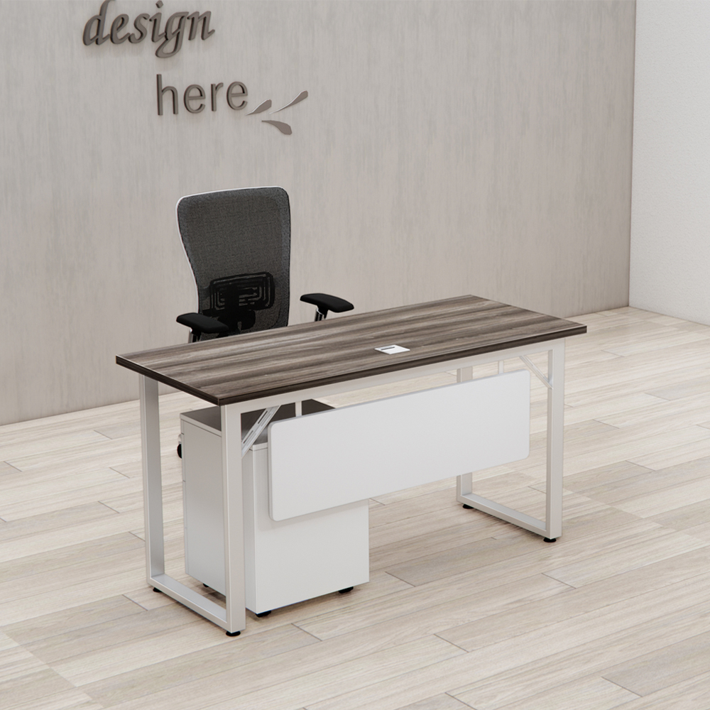 Kiểu dáng hiện đại, dễ phối nội thất: Thiết kế mặt bàn hình chữ nhật đơn giản kết hợp cùng yếm che chân tạo cảm giác gọn gàng, chuyên nghiệp.