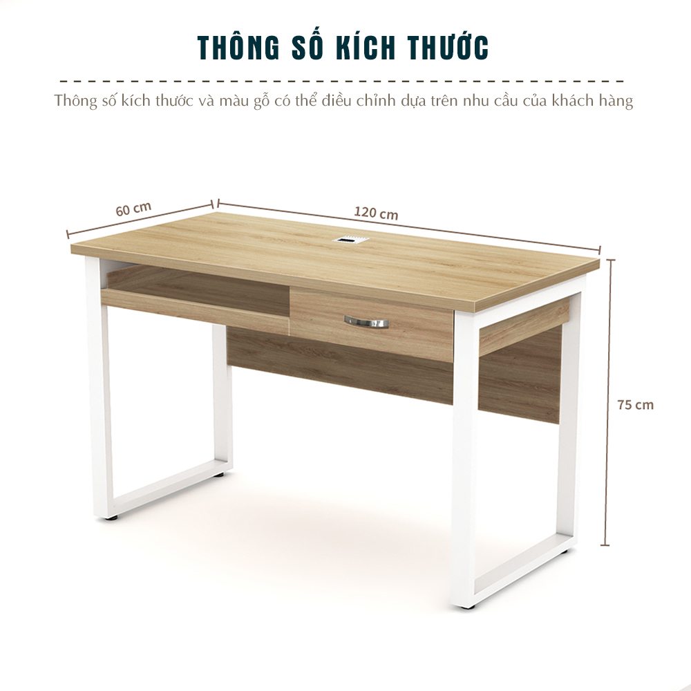 Thiết kế: Tích hợp ngăn kéo nhỏ phía dưới mặt bàn, phù hợp lưu trữ giấy tờ hoặc dụng cụ cá nhân