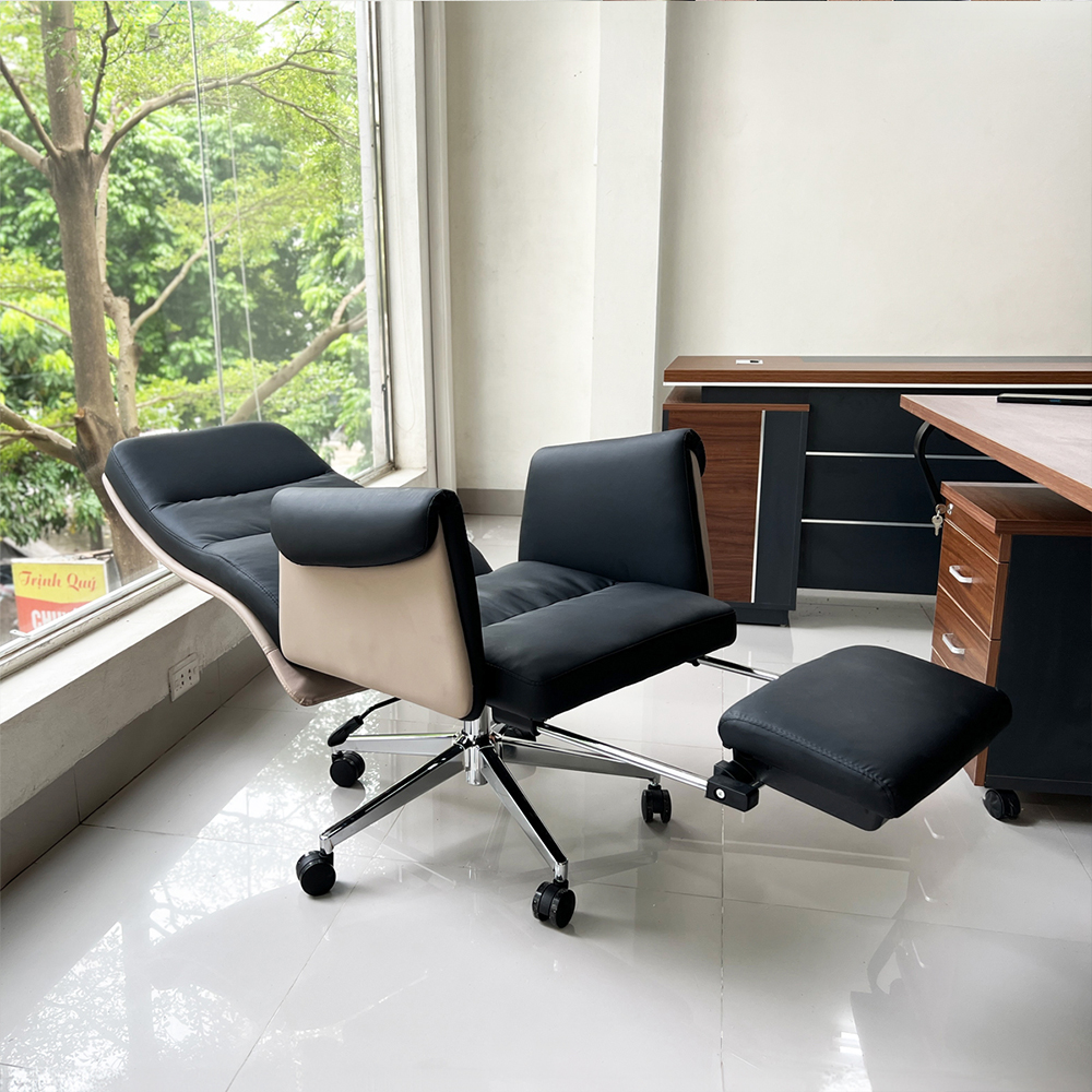 Màu đen phối be thanh lịch, dễ kết hợp với bàn làm việc và nội thất gỗ.