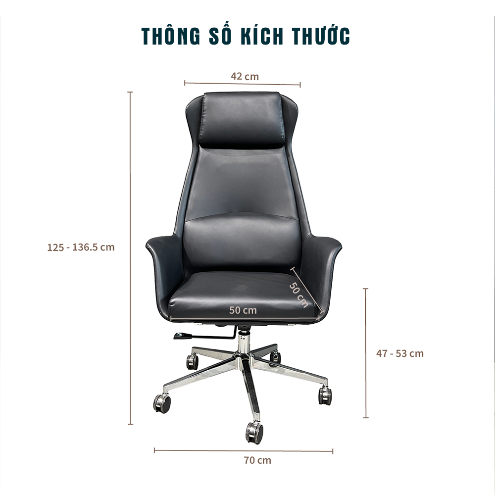 Fergus FGGD07 là mẫu ghế giám đốc cao cấp mang phong cách hiện đại, phù hợp với không gian làm việc chuyên nghiệp và có tính tổ chức cao. Sản phẩm nổi bật nhờ thiết kế lưng cao liền khối, đệm ngồi rộng rãi và đường nét chắc chắn, tạo cảm giác thoải mái và ổn định cho người dùng trong suốt ngày làm việc. Ghế phù hợp sử dụng trong phòng giám đốc, phòng họp cao cấp hoặc không gian làm việc tại nhà có yêu cầu cao về thẩm mỹ và công năng.