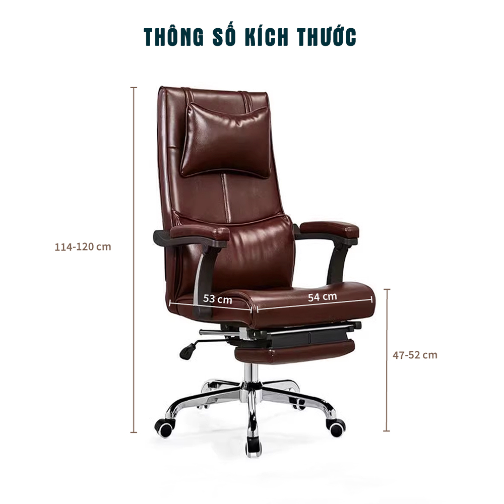 Màu nâu da PU sang trọng, dễ phối hợp với bàn làm việc, tủ hồ sơ và nội thất lãnh đạo.
