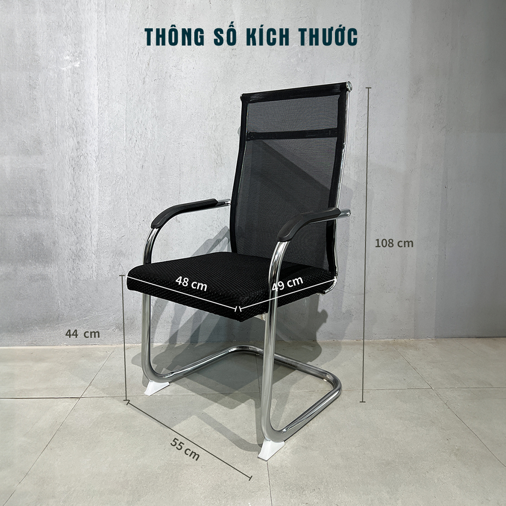 Màu sắc: Màu đen hiện đại, dễ phối với nội thất gỗ công nghiệp, bàn chân sắt hoặc bàn họp.