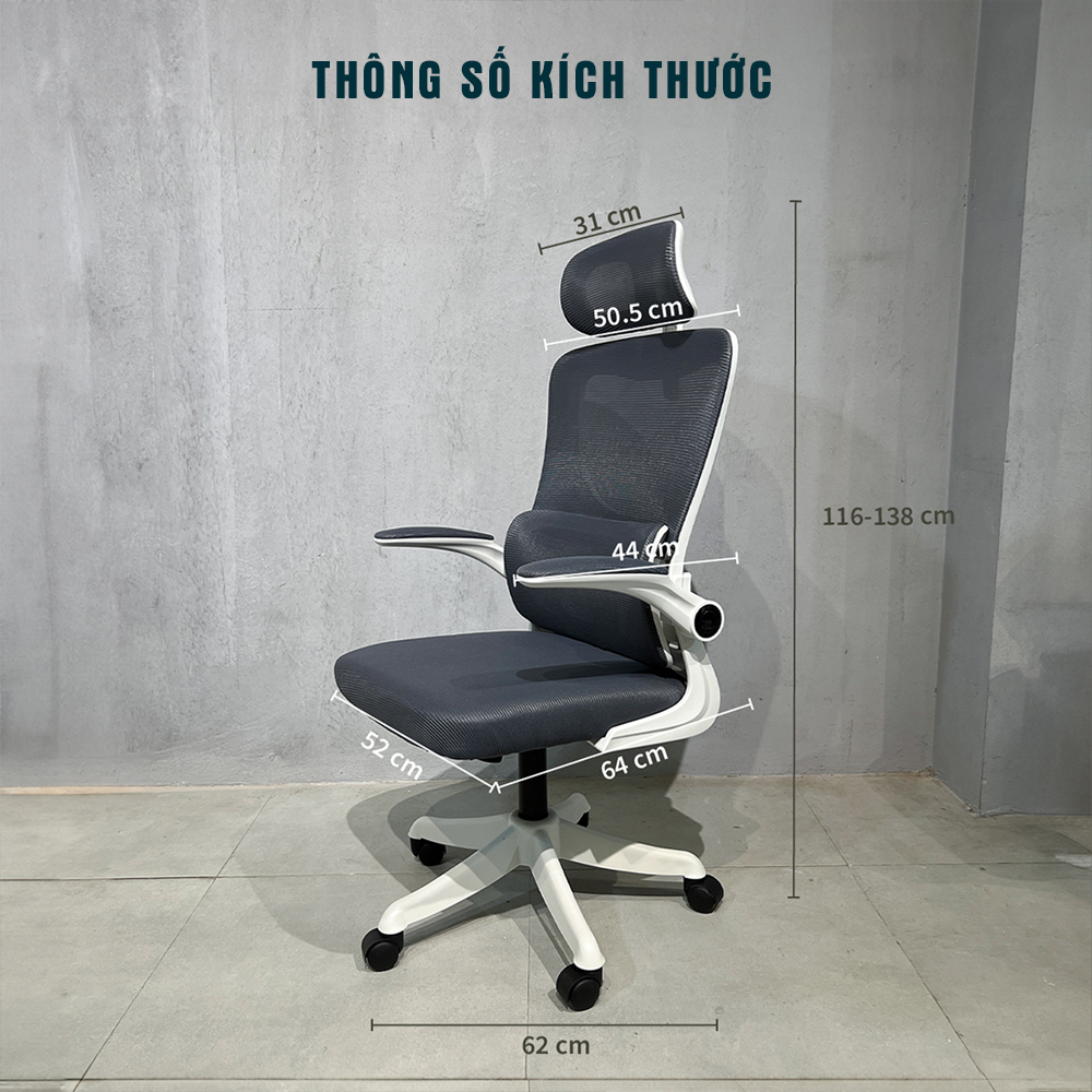 Màu sắc: Xám phối trắng – dễ kết hợp với bàn làm việc hiện đại