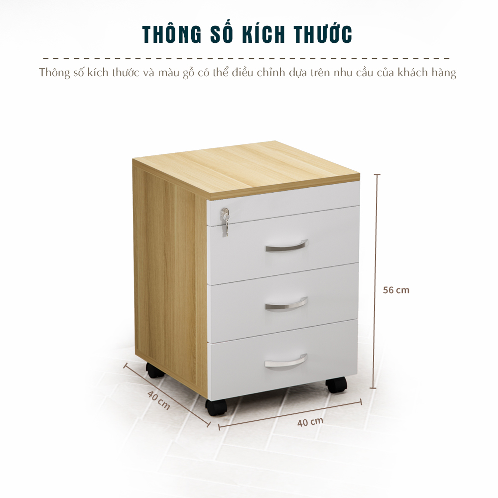 Màu sắc: Thân gỗ màu sáng, ngăn kéo trắng. Có thể tùy chỉnh theo nhu cầu