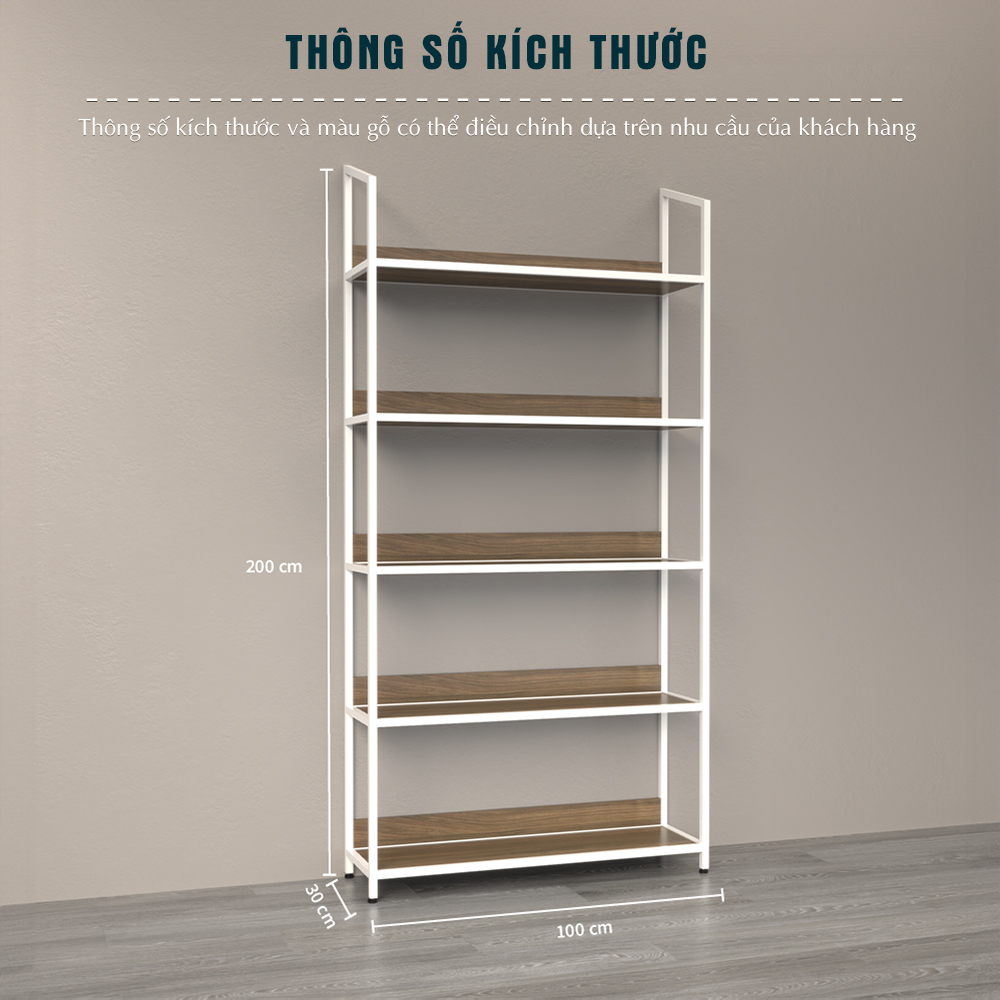 Với khung thép sơn tĩnh điện và các tầng bằng gỗ MDF phủ Melamin hạn chế trầy, kệ không chỉ đẹp mà còn bền, dễ lau chùi và sử dụng lâu dài.
