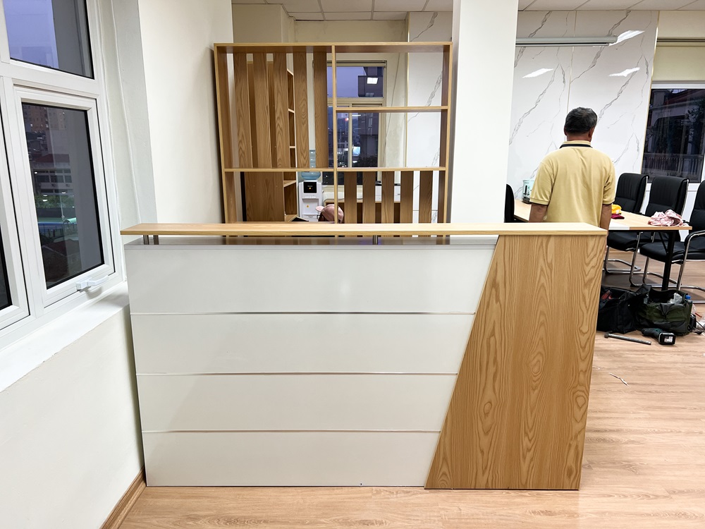 🔹 Quầy lễ tân: Thiết kế trang nhã, ấn tượng, mang đến sự chào đón chuyên nghiệp cho khách hàng ngay từ lần gặp đầu tiên.