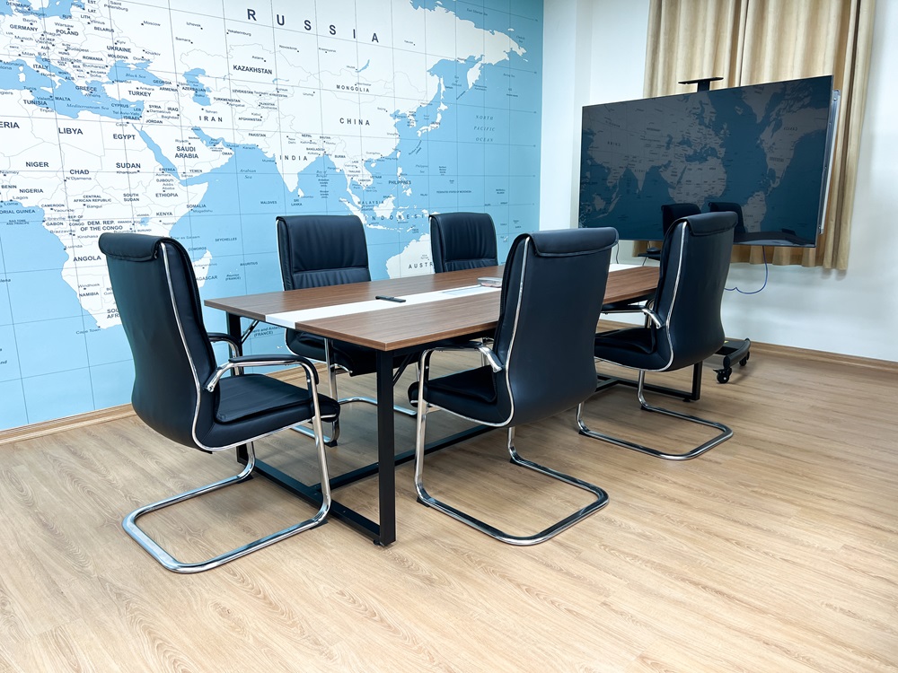 🔹 Bàn họp chân sắt: Thiết kế gọn gàng, chắc chắn, mang lại không gian thoải mái cho các buổi thảo luận và ra quyết định quan trọng.