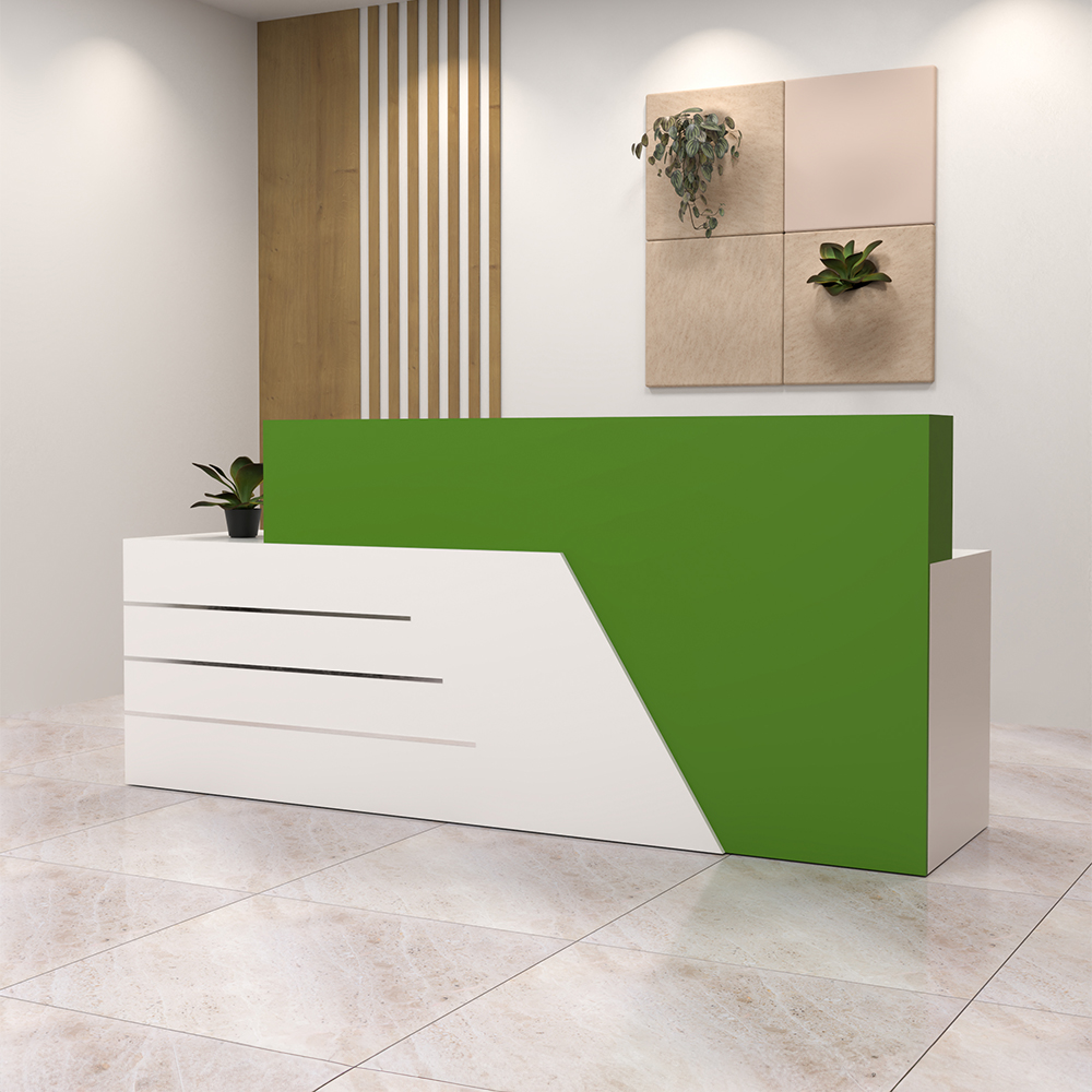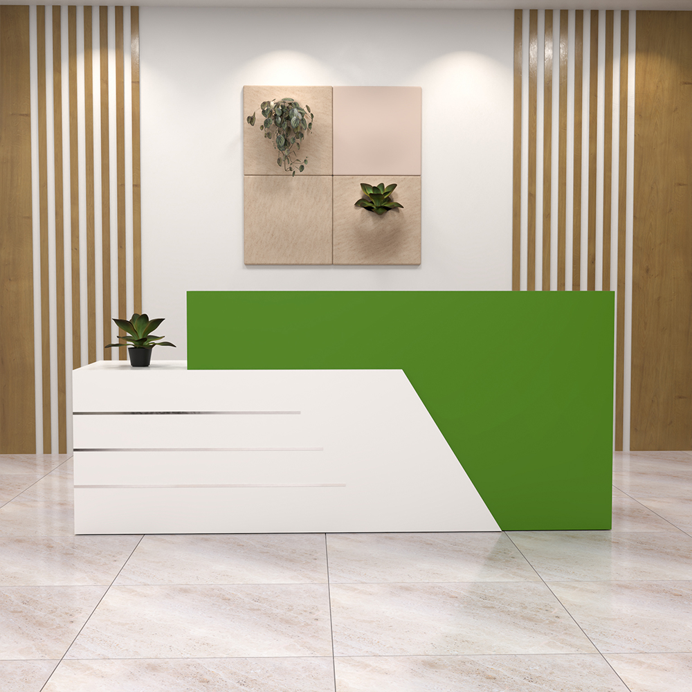 Mẫu FGQLT30 là quầy lễ tân cao cấp mang phong cách hiện đại, được thiết kế dành riêng cho các doanh nghiệp có hai nhân viên tiếp tân hoạt động song song. Với phối màu trắng – xanh lá cây tươi sáng và bố cục chia đôi khoa học, sản phẩm dễ dàng tạo được ấn tượng tích cực cho khách hàng ngay từ lần đầu tiếp xúc.