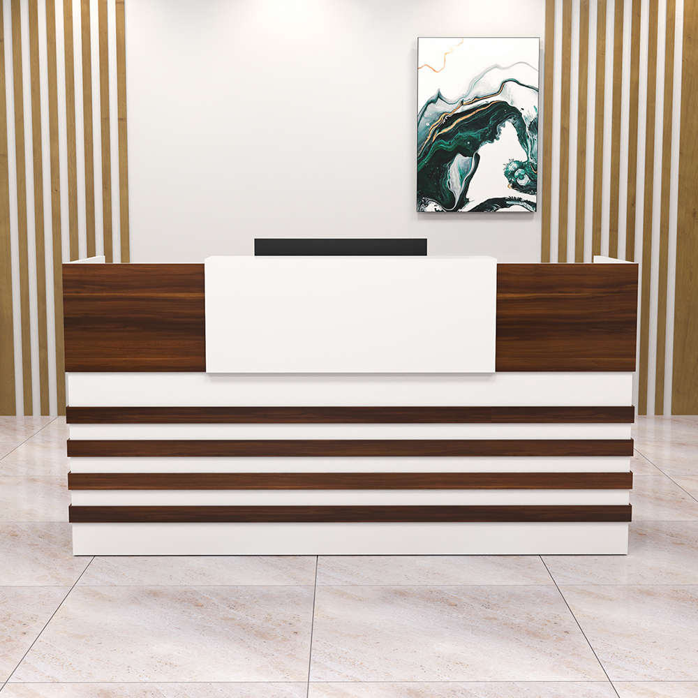 Mẫu FGQLT33 thuộc dòng quầy lễ tân cao cấp của thương hiệu FERGUS, nổi bật với thiết kế vuông gọn, mặt trước phẳng hiện đại và các chi tiết vân gỗ trang trí nổi bật bên hông. Sản phẩm phù hợp sử dụng trong môi trường văn phòng chuyên nghiệp, trung tâm chăm sóc khách hàng, phòng khám, showroom hoặc khu vực tiếp khách nhỏ gọn.