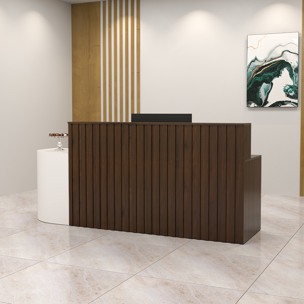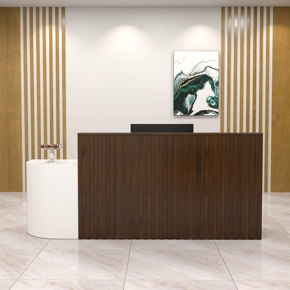 FGQLT34 là mẫu quầy lễ tân cao cấp thuộc bộ sưu tập của thương hiệu FERGUS, được thiết kế theo phong cách hiện đại với điểm nhấn là phần bàn phụ cong tích hợp bên phải. Sự kết hợp giữa tông gỗ nâu trầm và trắng sáng mang đến vẻ ngoài sang trọng, dễ hài hòa với nhiều không gian nội thất từ văn phòng doanh nghiệp đến showroom, spa, trung tâm dịch vụ.