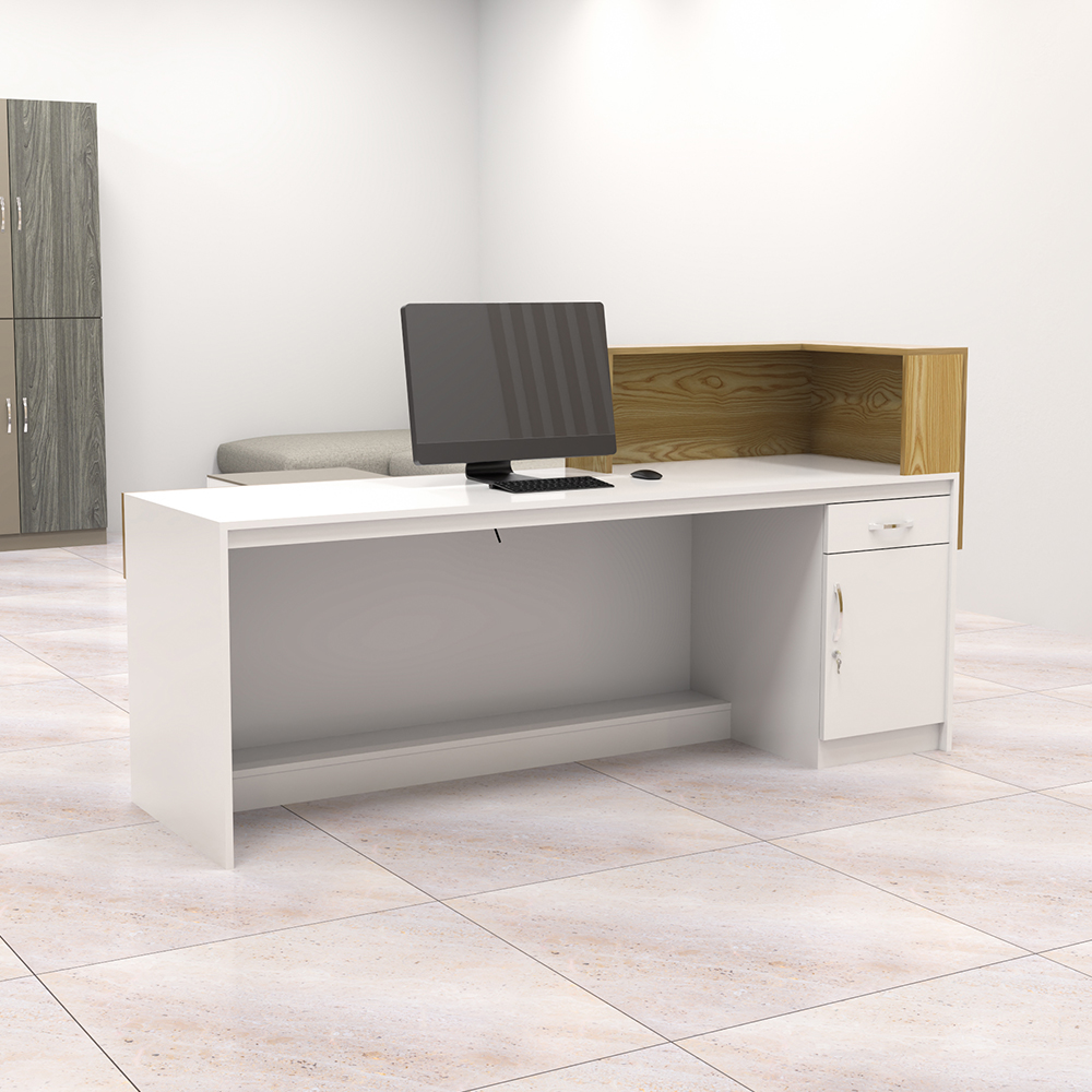 Mẫu FGQLT36 là dòng quầy lễ tân cao cấp được phát triển bởi thương hiệu FERGUS, nổi bật với thiết kế tối giản và bố cục làm việc khoa học. Với phần mặt trước trắng tinh tế kết hợp vách gỗ vân sáng ở góc phải, sản phẩm mang lại ấn tượng nhẹ nhàng, dễ phối với nhiều không gian tiếp khách như văn phòng doanh nghiệp, showroom, spa hoặc trung tâm dịch vụ.