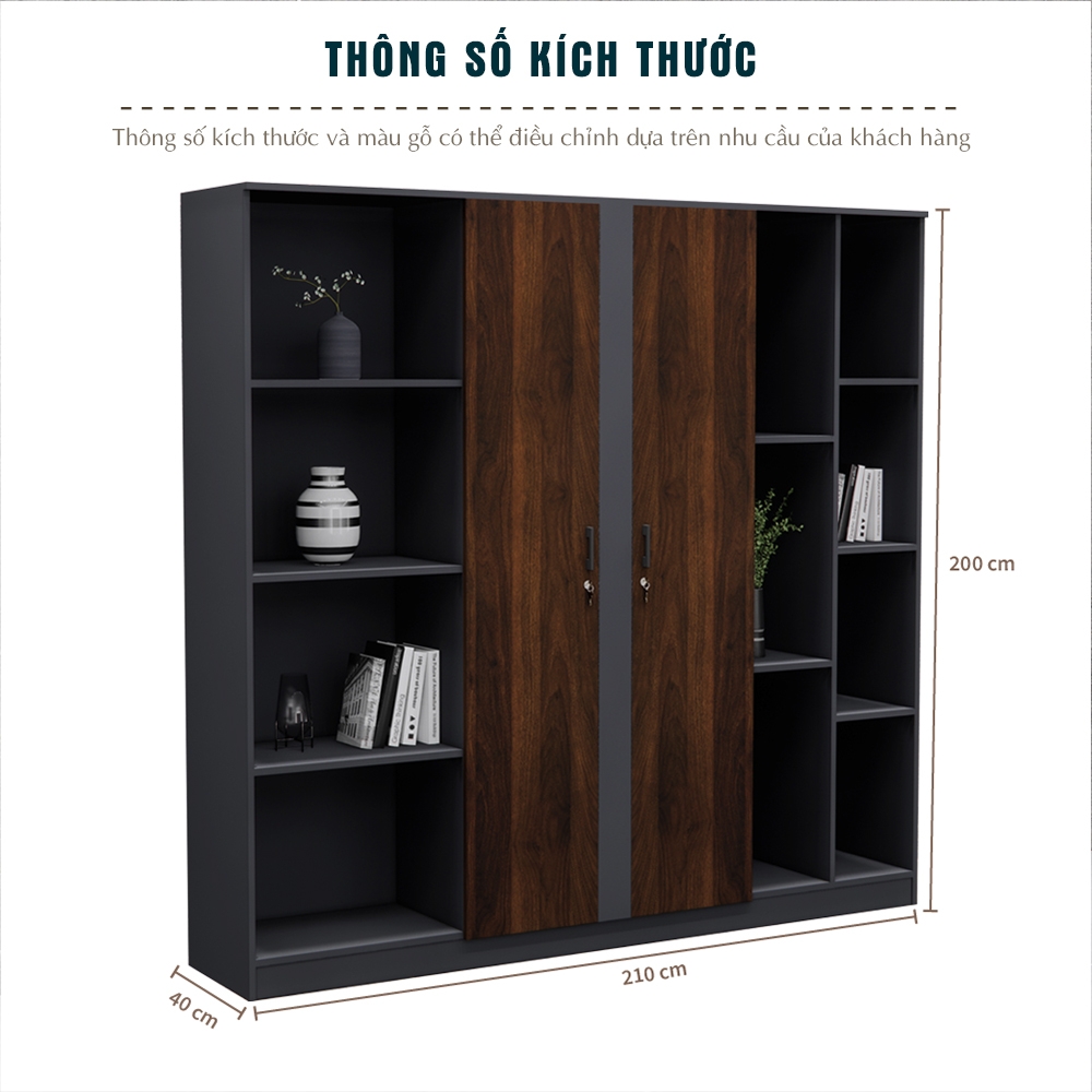 • Màu sắc: Thân tủ màu đen kết hợp cánh gỗ nâu vân tự nhiên