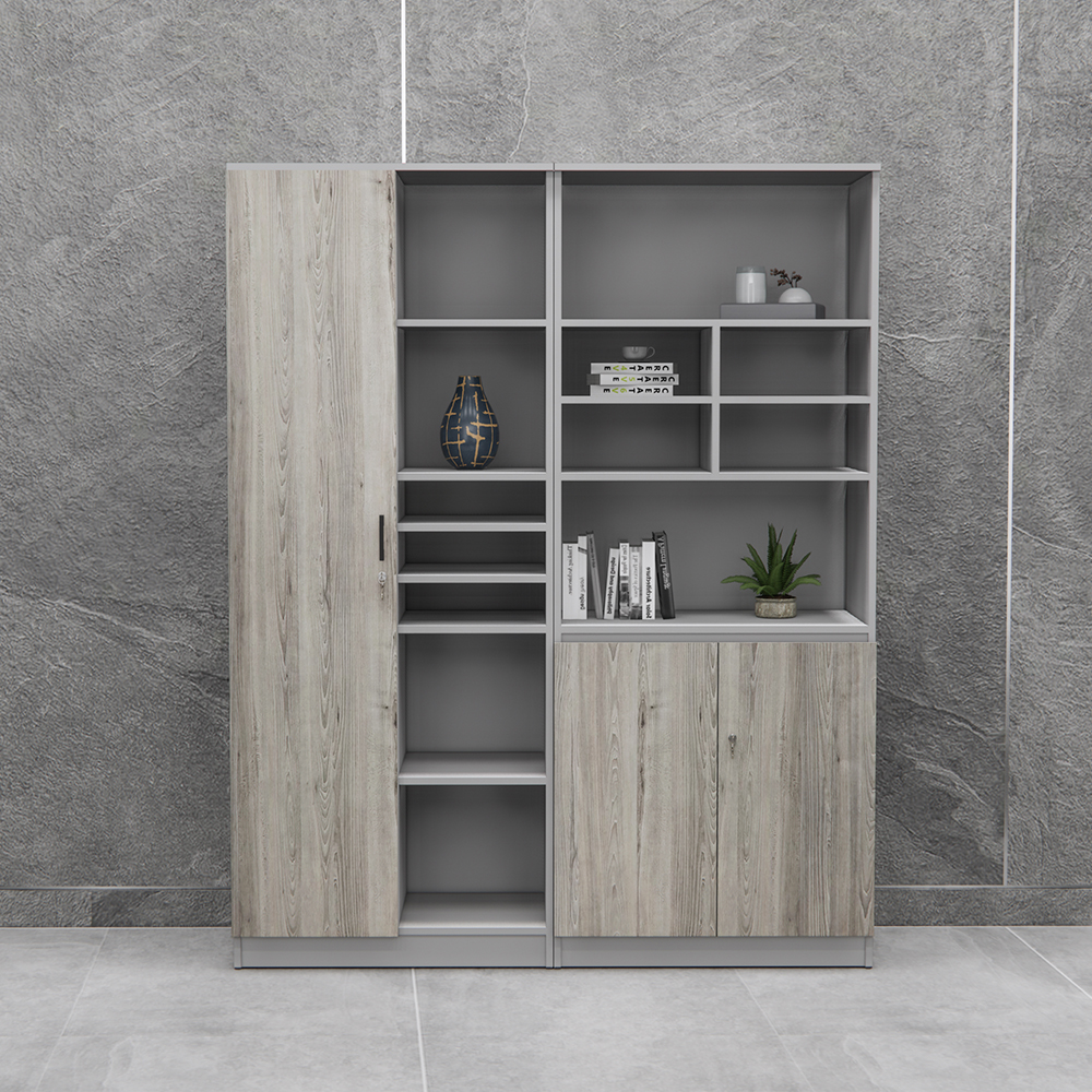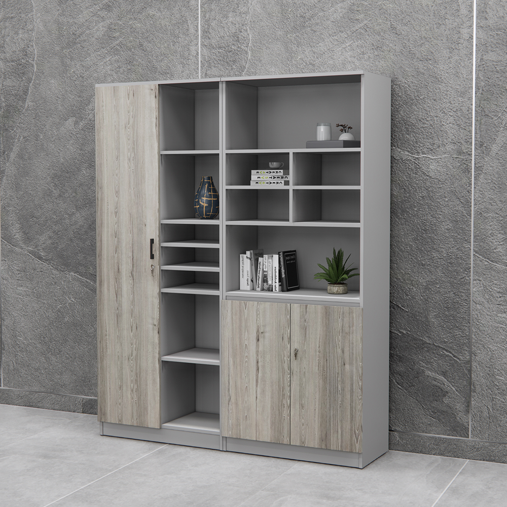 Sản phẩm được hoàn thiện từ gỗ MDF phủ Melamin có khả năng hạn chế trầy xước, dễ vệ sinh, phù hợp với môi trường văn phòng sử dụng hàng ngày. Tông màu ghi sáng kết hợp vân gỗ trung tính giúp dễ phối hợp với bàn giám đốc và các món nội thất khác trong cùng một không gian.