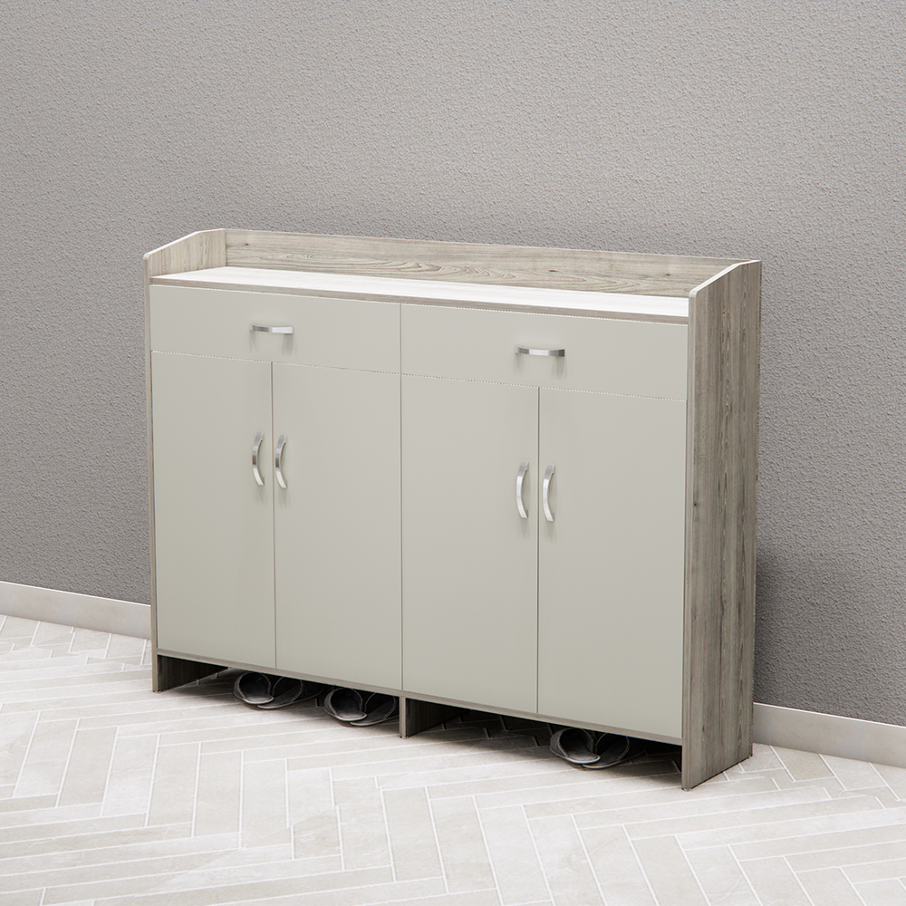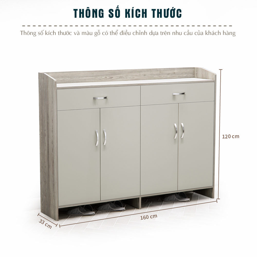 Tích hợp 2 ngăn kéo phía trên, tiện dụng cho việc cất giữ phụ kiện nhỏ như vớ, chìa khóa, khăn lau giày