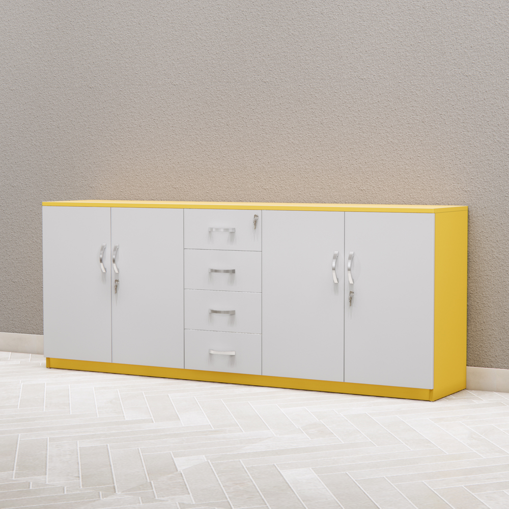 Tủ hồ sơ thấp FGTHST17 thuộc dòng sản phẩm tủ văn phòng đa năng do FERGUS sản xuất, nổi bật với thiết kế cân đối giữa ngăn kéo và ngăn tủ cánh mở. Với chiều dài 2 mét, sản phẩm phù hợp cho những không gian cần lưu trữ nhiều hồ sơ theo dạng phân loại. Tông màu vàng phối trắng mang đến cảm giác tươi mới, tạo điểm nhấn cho không gian làm việc.